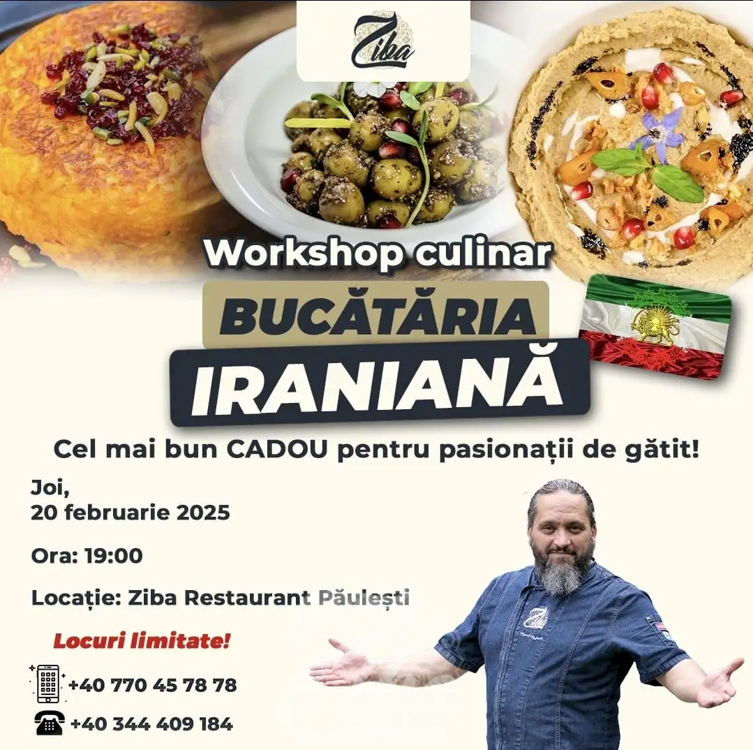 Indiferent dacă ești începător sau ai deja experiență în bucătărie, workshopurile Ziba sunt concepute pentru a fi accesibile și captivante pentru toți participanții. Sub îndrumarea lui Chef Mehrzad, vei învăța tehnici de gătit din bucătăria clasică și modernă, vei descoperi combinații unice de gusturi și arome, iar la sfârșitul cursului vei pleca acasă cu o experiență de neuitat, cunoștințe noi și secrete culinare care te vor ajuta să îți impresionezi prietenii și familia.